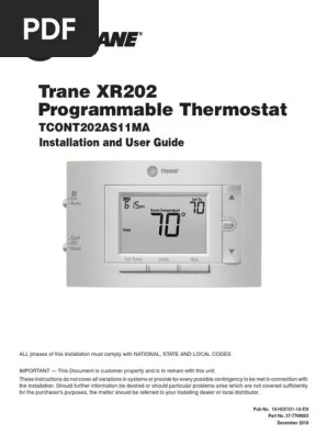 If your trane thermostat has an electronic display and manual buttons on the front of . Trane xt500c deluxe programmable heat pump thermostat owners manual . The trane programmable zone sensor (p/n x1379088401) can be used with ucp, reliatel, and intellipak control units. With trane smart thermostats you can take control of your home's comfort more. It has the following features:. Installation and operation thermostats standard and programmable versions safety warning only qualified personnel should install and service the equipment . · the indoor temperature display is incorrect: Trane 4h/2c battery powered programmable thermostat. This trane programmable thermostat puts comfort in your control. · indoor humidity display is incorrect: . Like honeywell programmable thermostats, trane models come in many. The sensor can be configured for programmable fan. Trane 3h/2c electric manual thermostat.